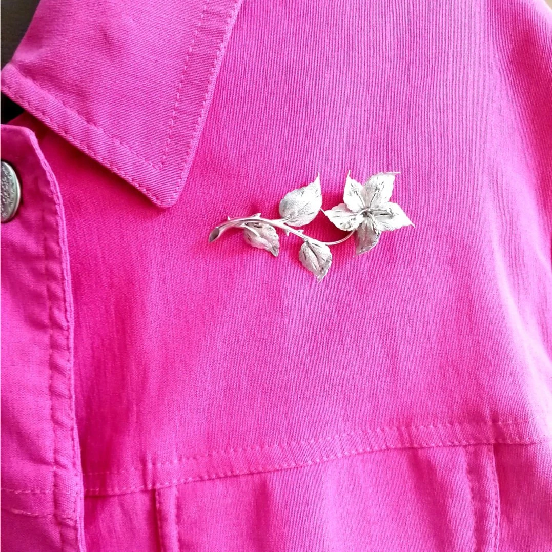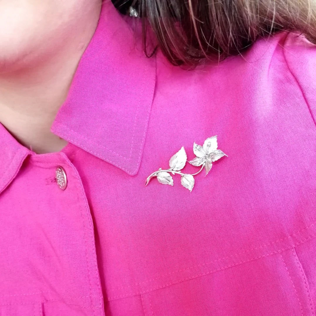 Broche Fleur en or blanc 18 carats soulignée de diamants.