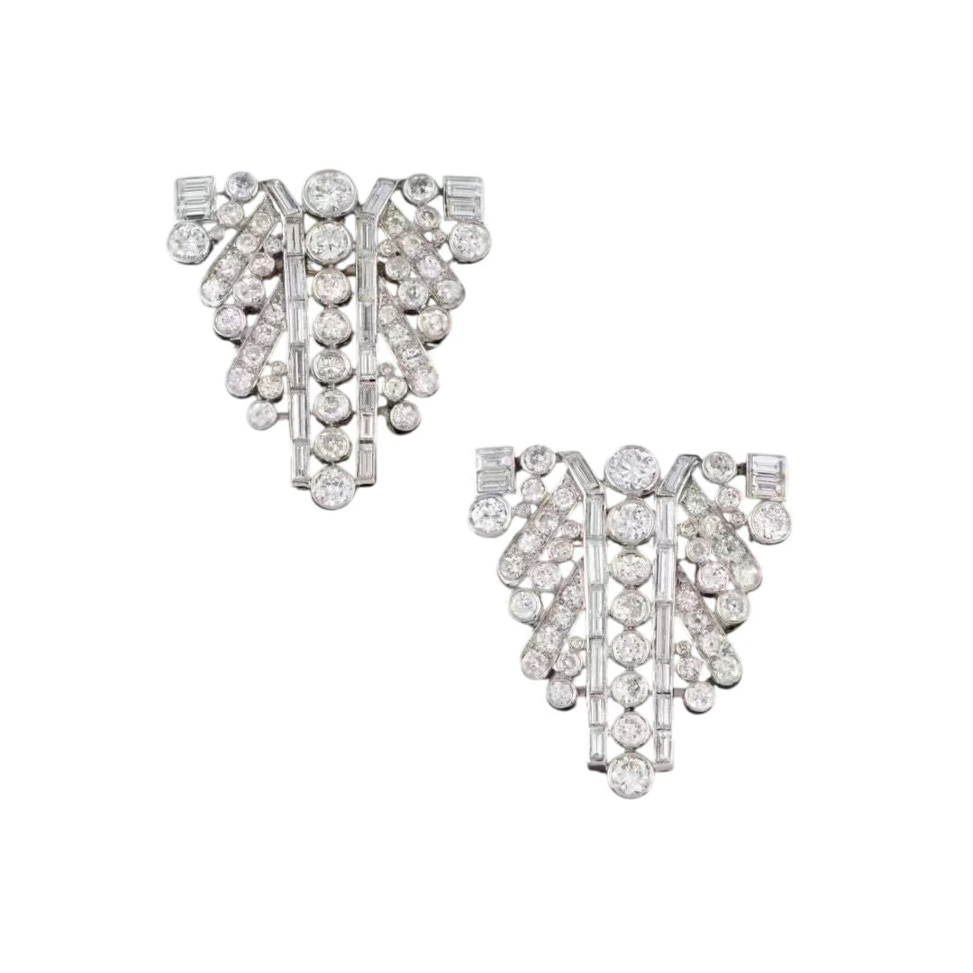 Broches doubles Clip en or blanc 18 carats et platine, serti de diamants rectangulaires et ronds taillés en huit-huit et de taille ancienne.