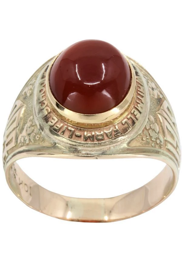Cette chevalière est une véritable bague universitaire américaine de Danville en Virginie.La traduction de la bague universitaire remonte à la promotion de 1835 de l’académie militaire de West Point, elle symbolise l’esprit de corps et la solidarité au sein du groupe. Elle s’est ensuite peu à peu répandue sur les campus universitaires civils des Etats-Unis.