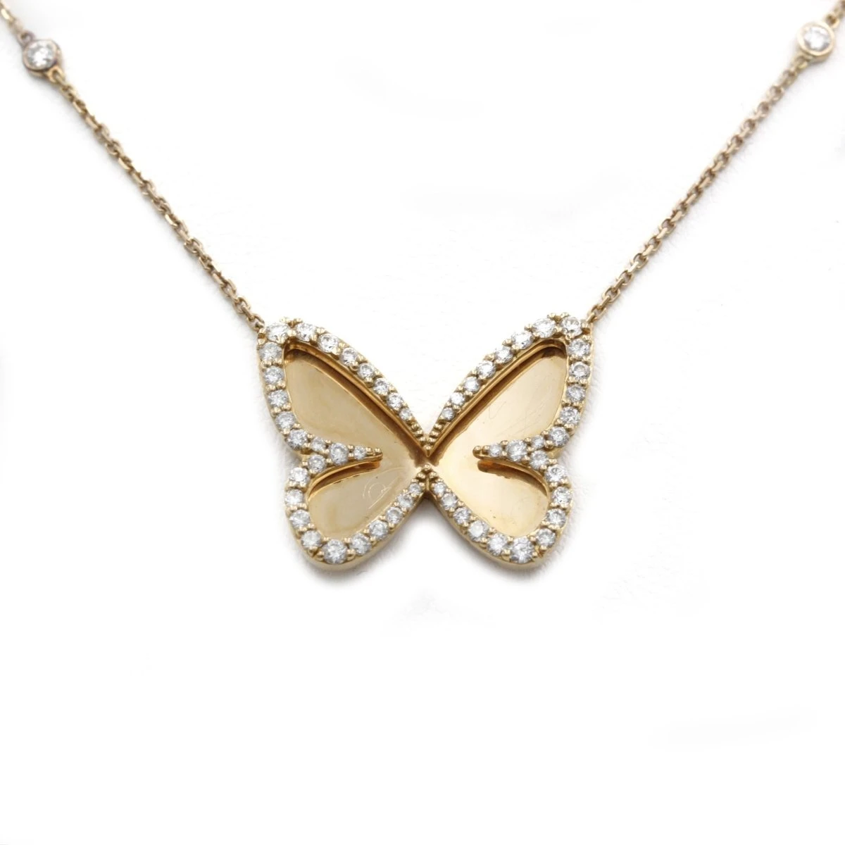 Collier Butterfly signé Messika et numéroté, en or rose 750‰, serti de diamants (0,59 carat), qualité F VS.