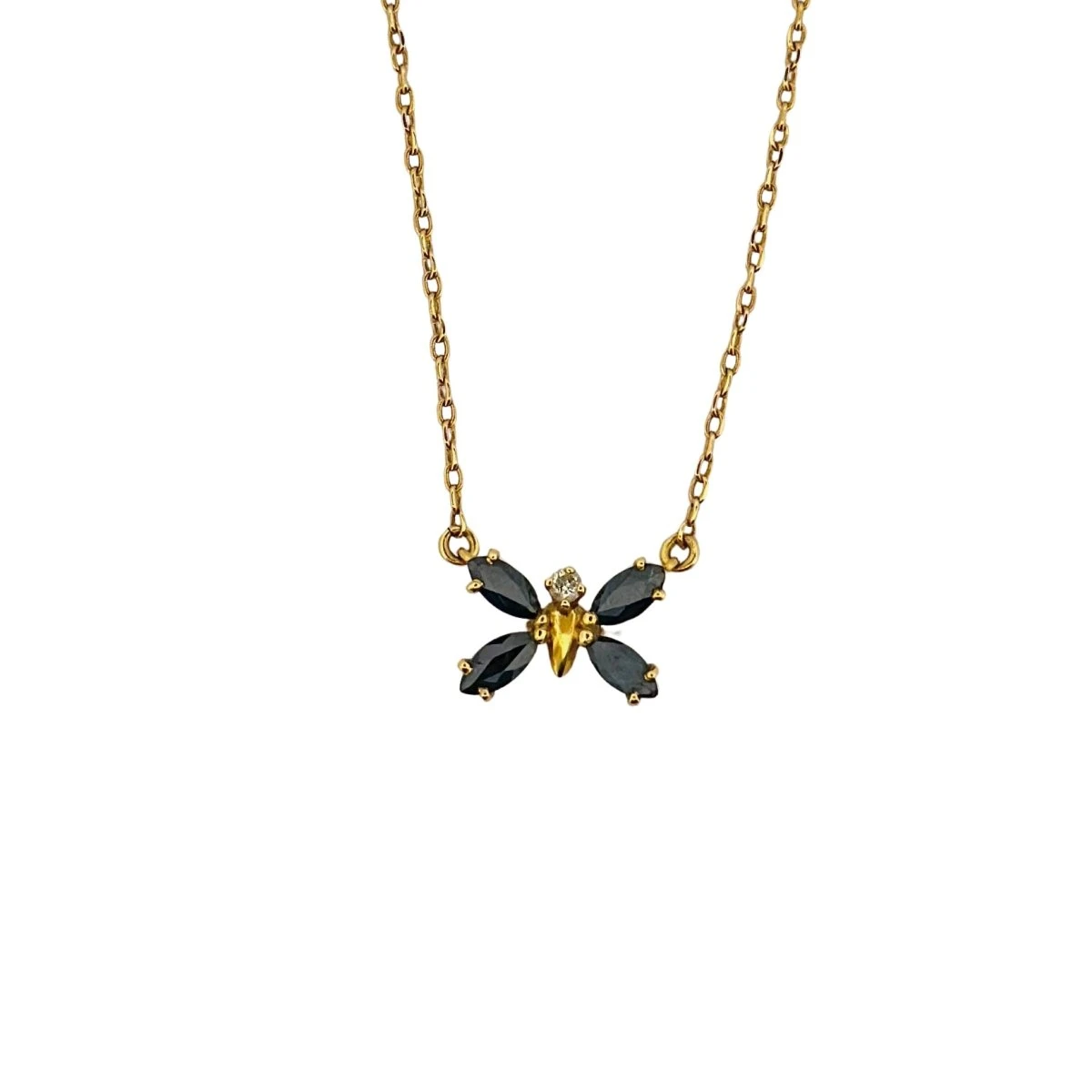 Collier Papillon En Or Jaune Saphirs Et Diamant