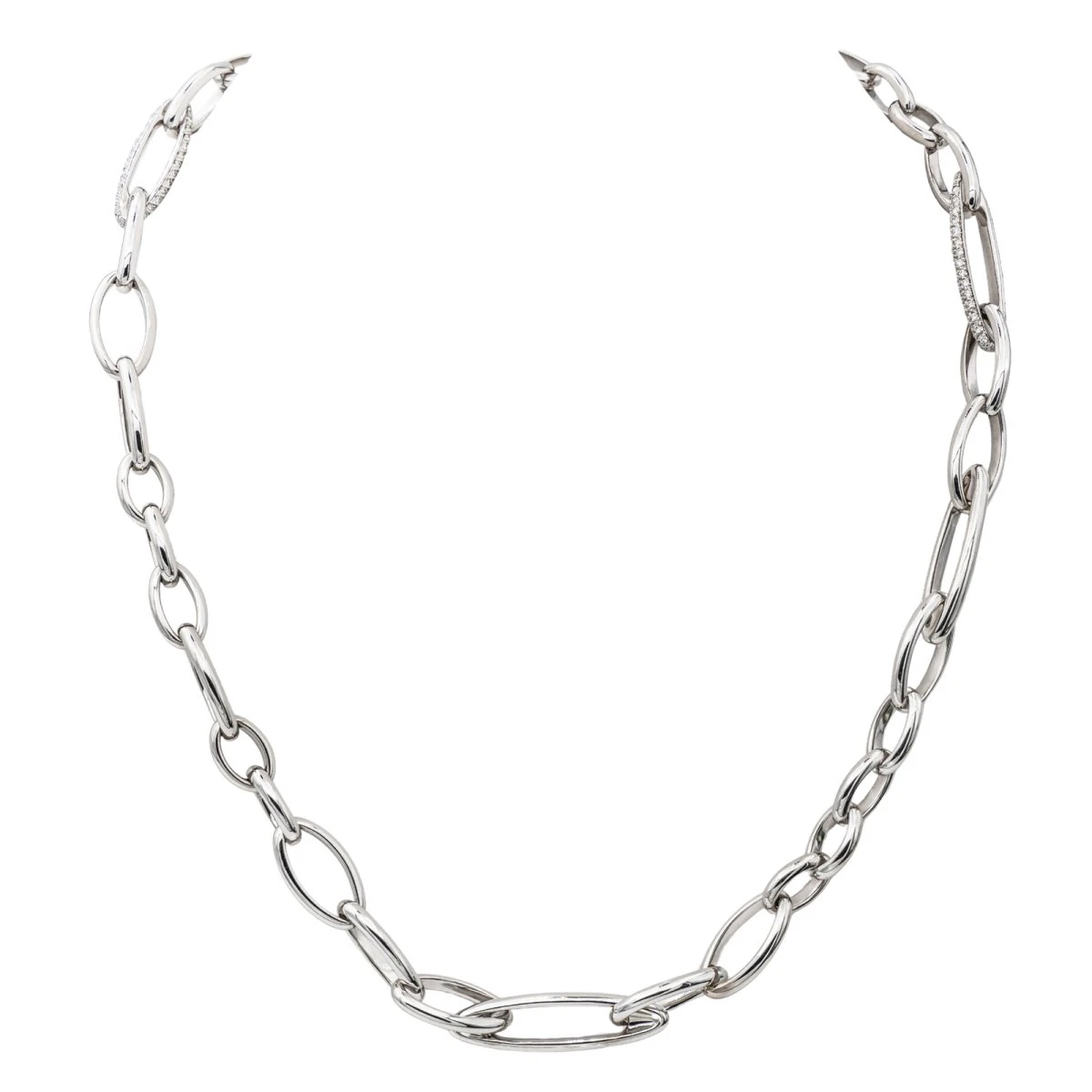 Collier signé de la Maison Pomellato en or blanc750 millièmes (18 carats). modèle Iconica. taille brillant. poids total diamants : environ 1.40 ct (chaque diamants d’un poids d’environ 0.01 ct). maille Iconica. longueur : 59 cm. largeur : 0.36 cm. poids total : 118.45 g. poinçon tête d’aigle. numéroté. excellent état