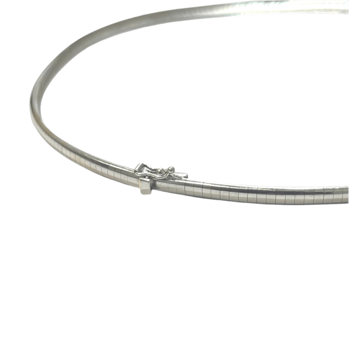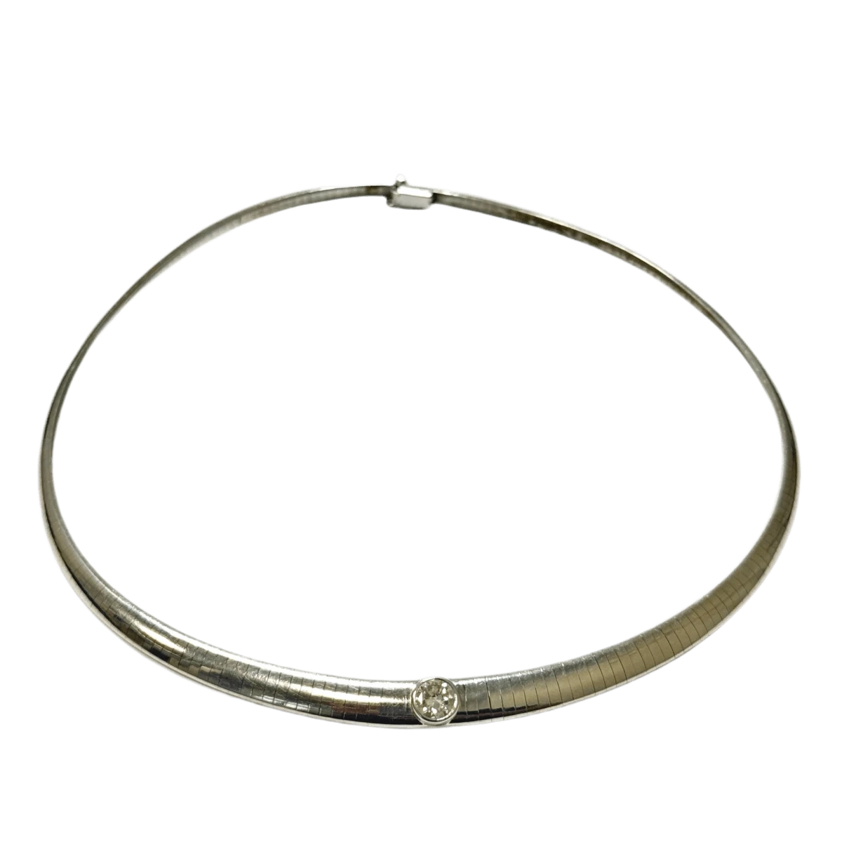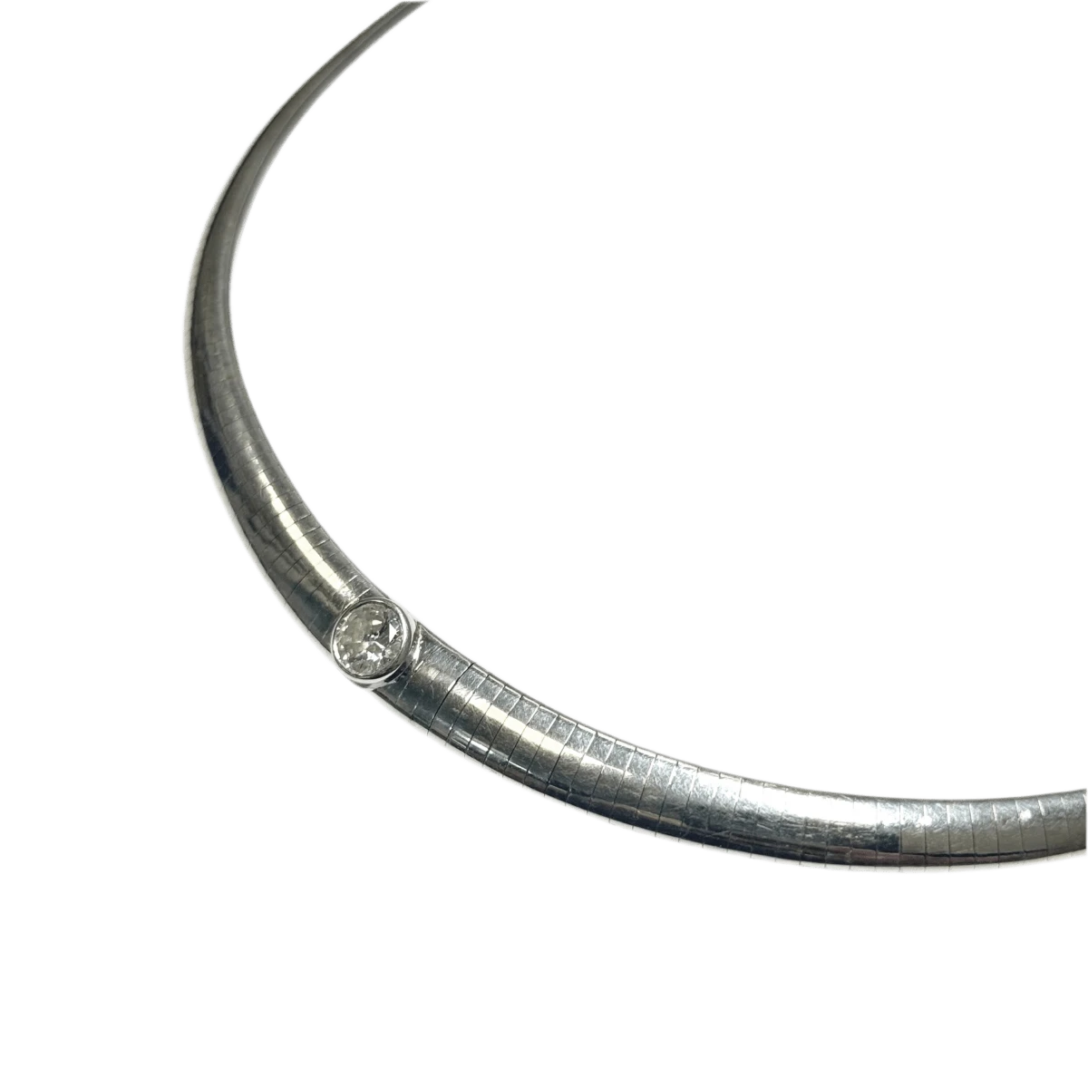 Collier Ras de Cou à maille oméga en chute décoré en son centre d’un diamant taille ancienne en serti clos