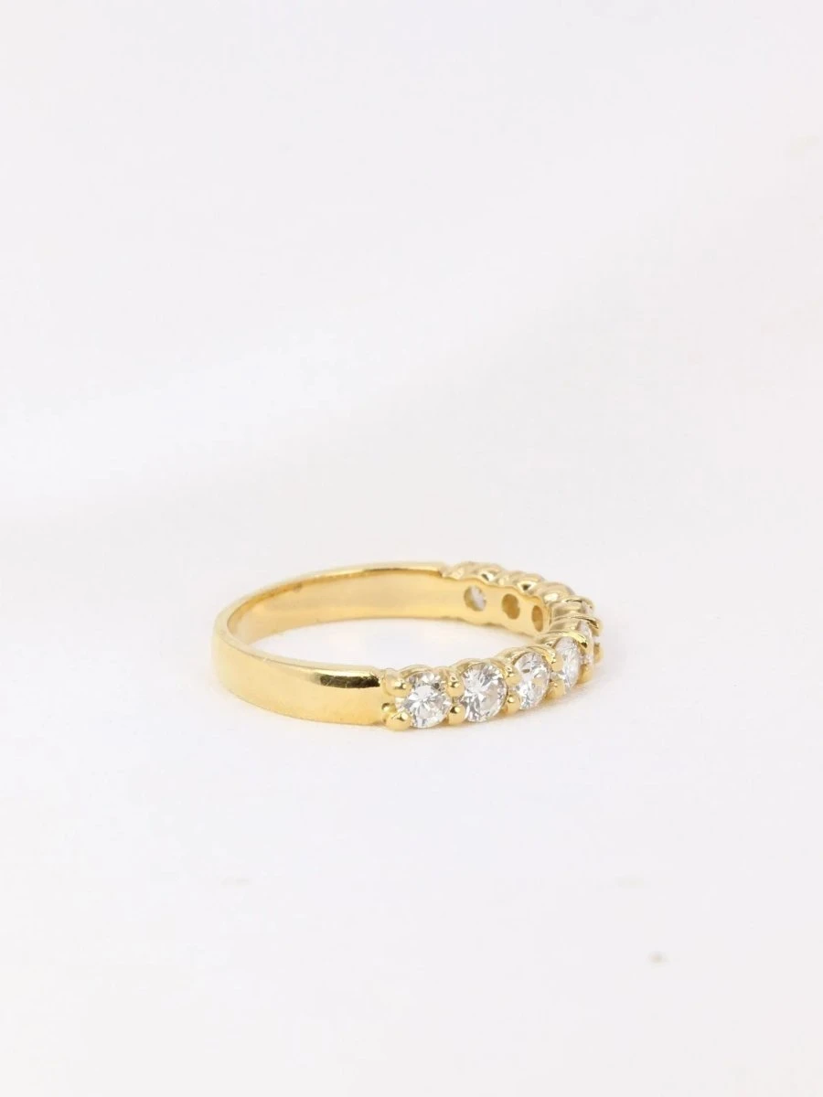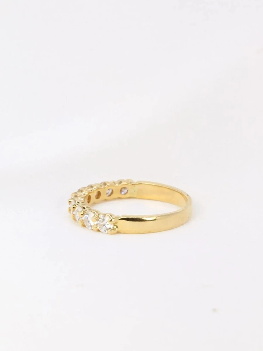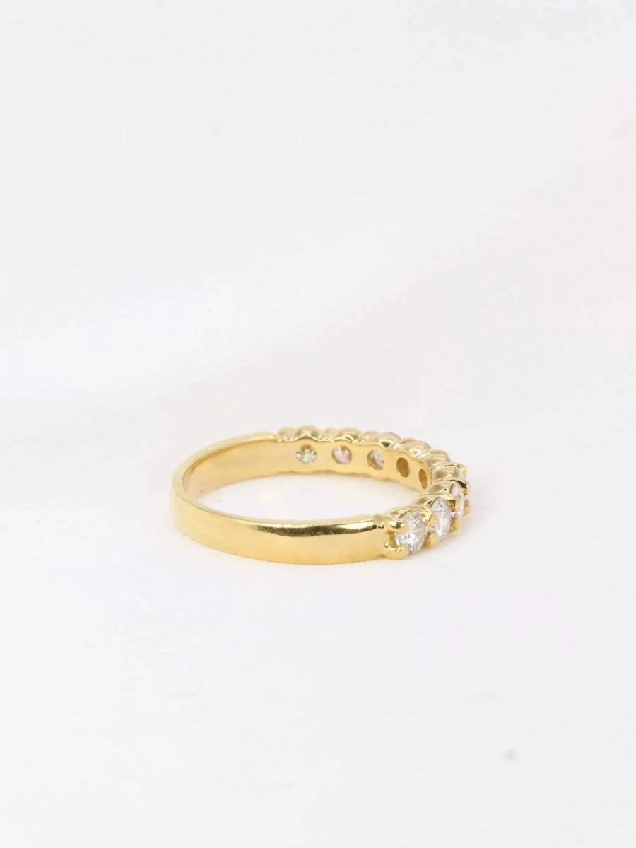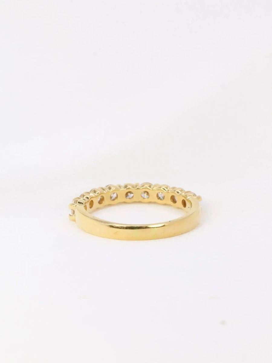 Demi-Alliance américaine en or jaune 18k (750°/°°) sertie de 9 diamants taille brillant pesant environ 0,15 ct chacun (FG VS) pour un poids total d’environ 1,35 ct. Travail français vintage.