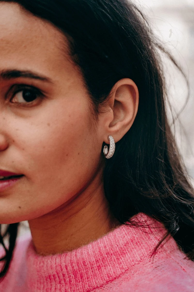 Boucles d’oreilles demi créoles en or blanc 18 carats, entièrement sertis de diamants de taille brillant.