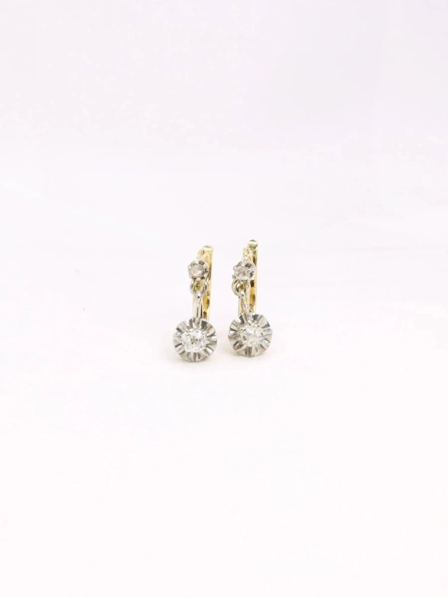 Boucles d’oreilles anciennes or platine diamants