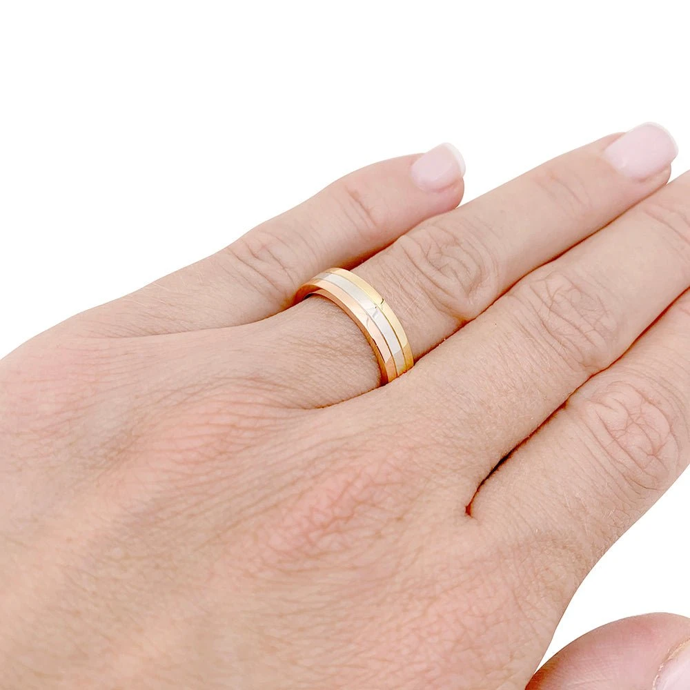 Une bague signée de la Maison Cartier, modèle “Vendôme Louis Cartier” dans les trois tons d’ors 18 carats.
