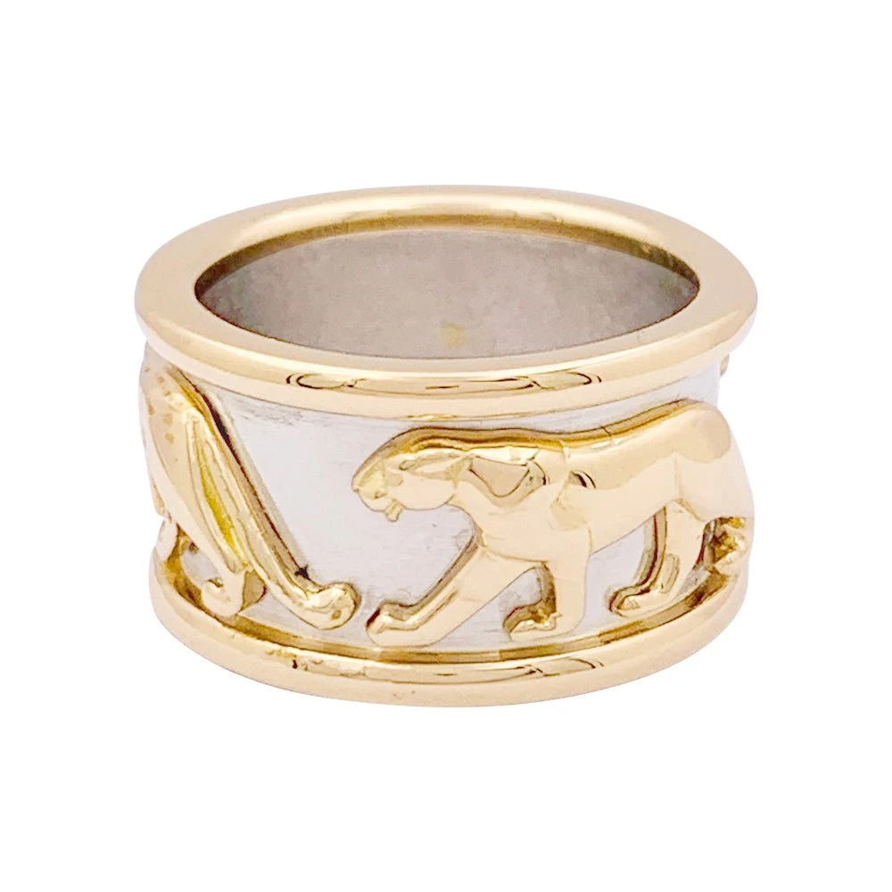Une bague bandeau signée de la Maison Cartier, modèle ‘Pharaon Panthère’, en or jaune et blanc 18 carats.