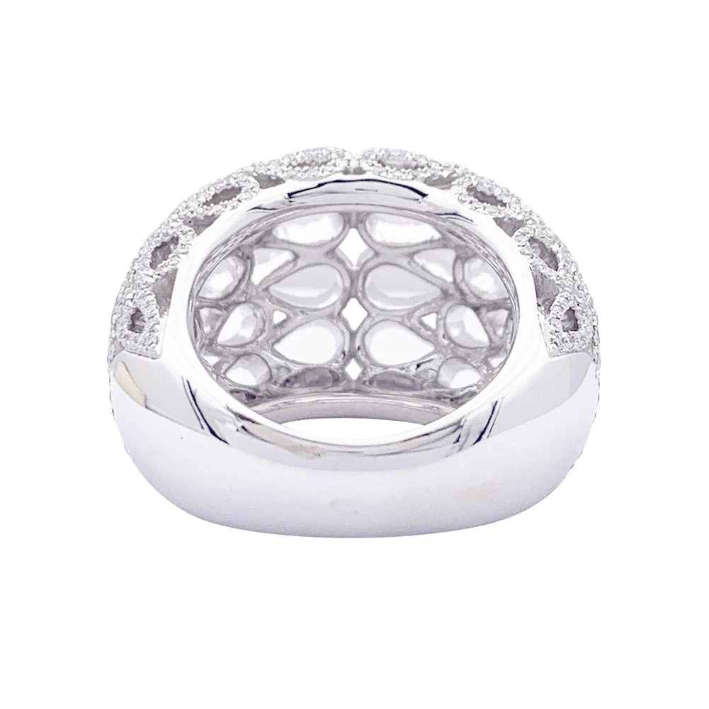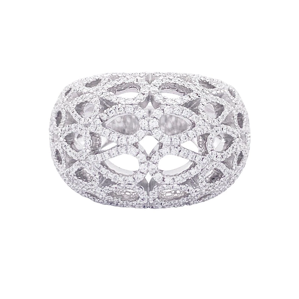 Bague dôme BUCHERER, collection ‘Lacrima’ en or blanc 18 carats, présentant un motif de gouttes juxtaposées pavées de diamants.