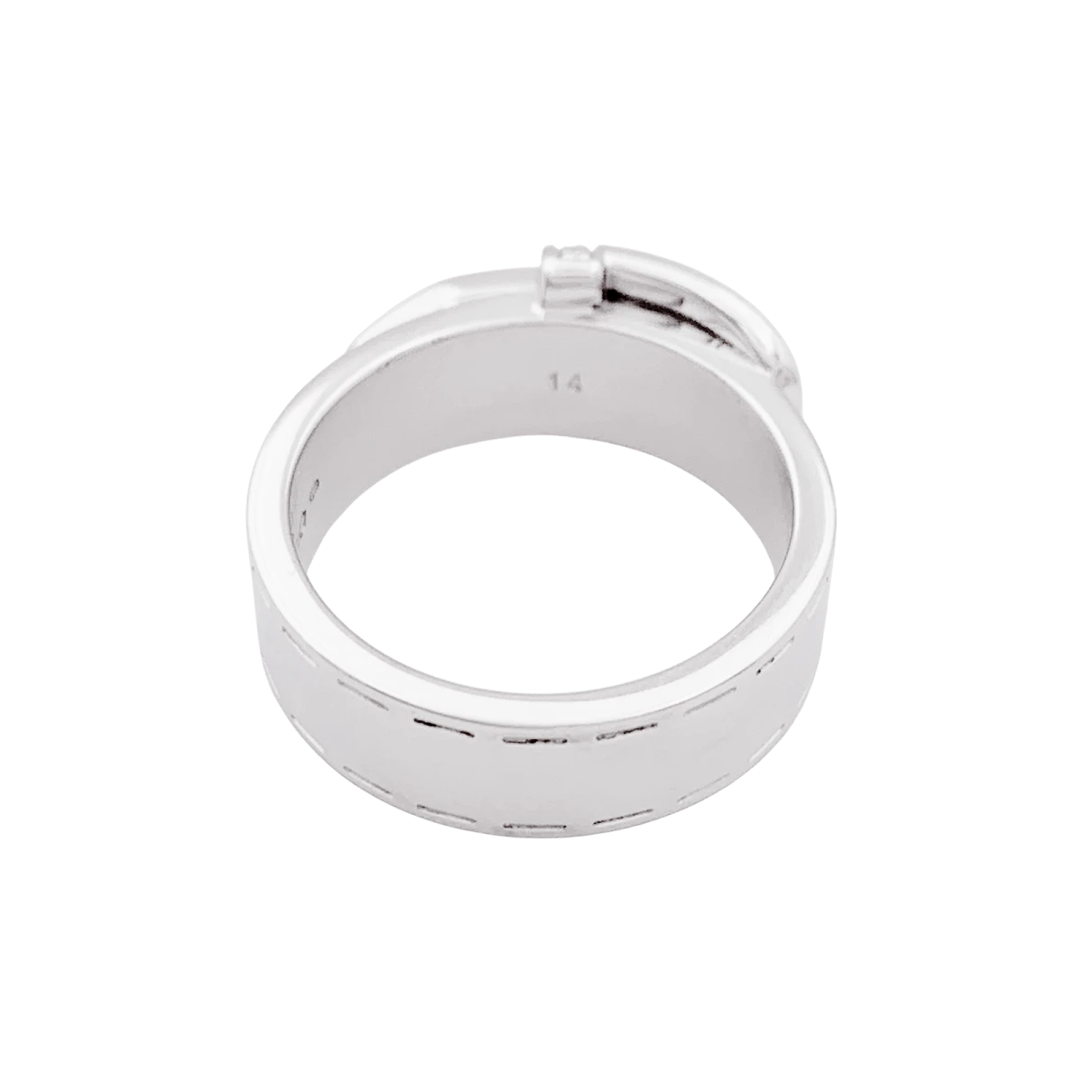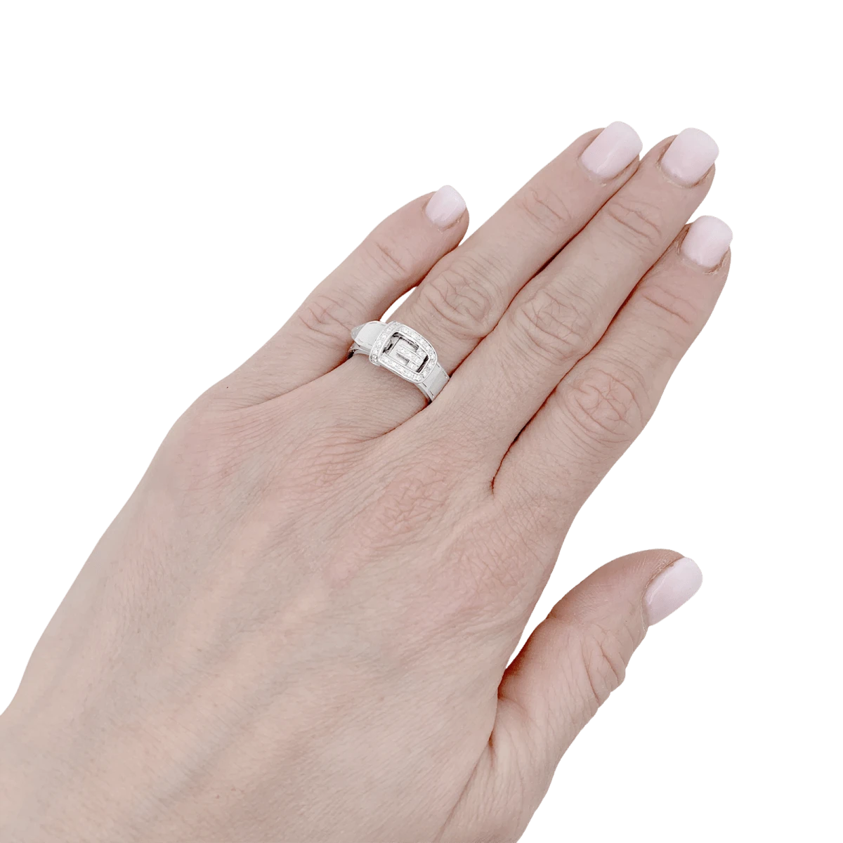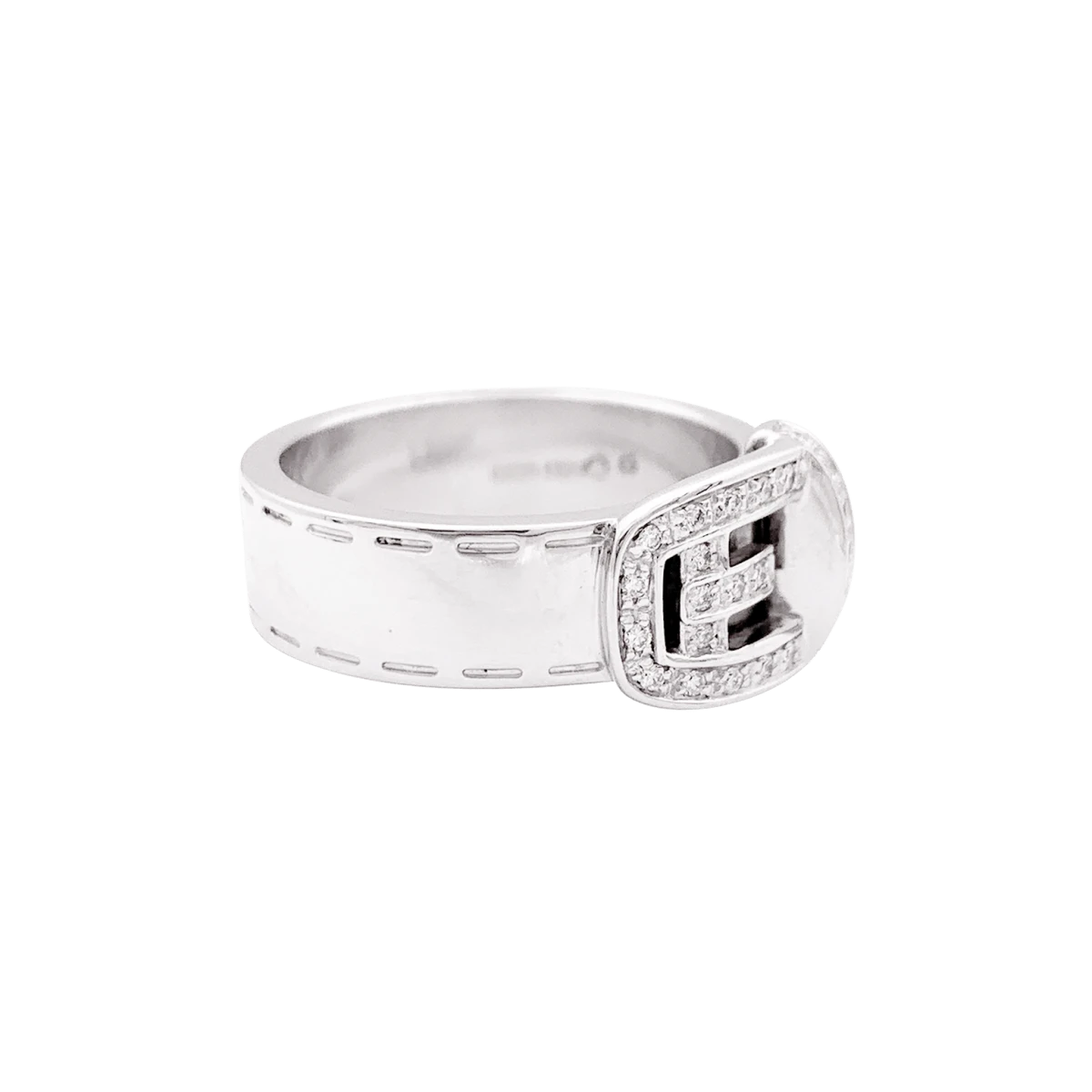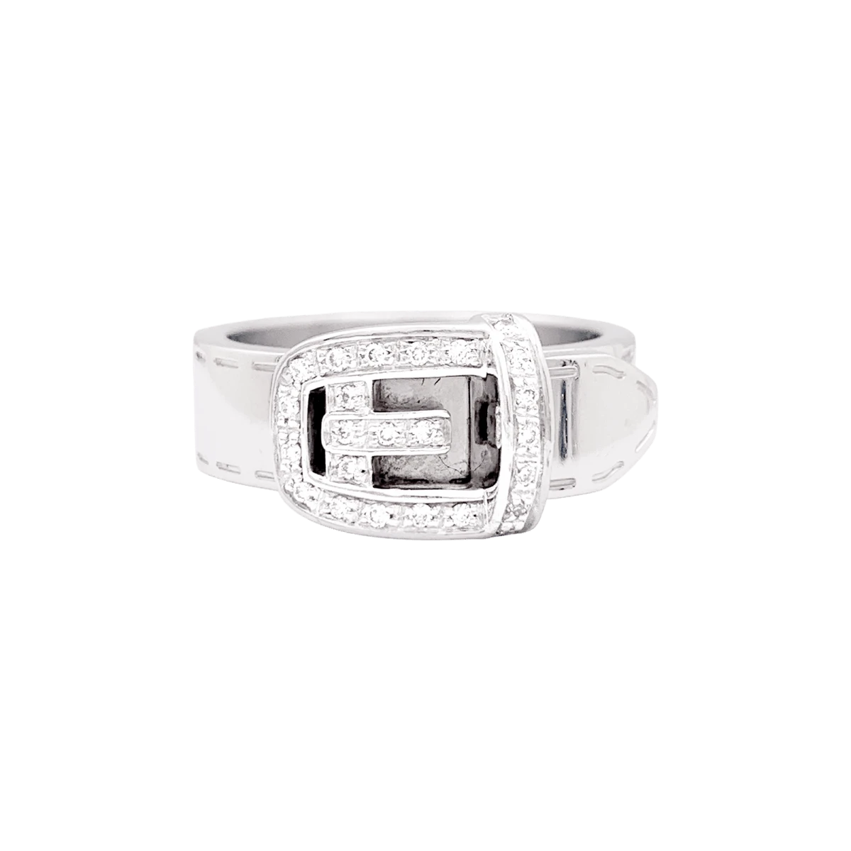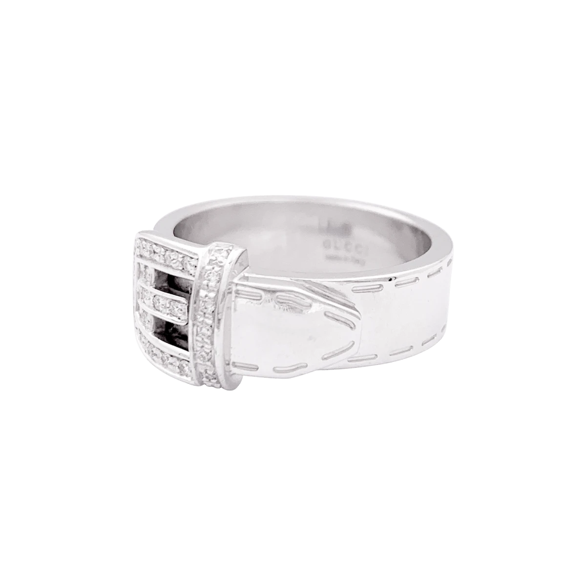 Bague signée de la Maison Gucci, modèle “Ceinture”, en or blanc 18 carats dont le motif de boucle est pavé de diamants taille brillant.