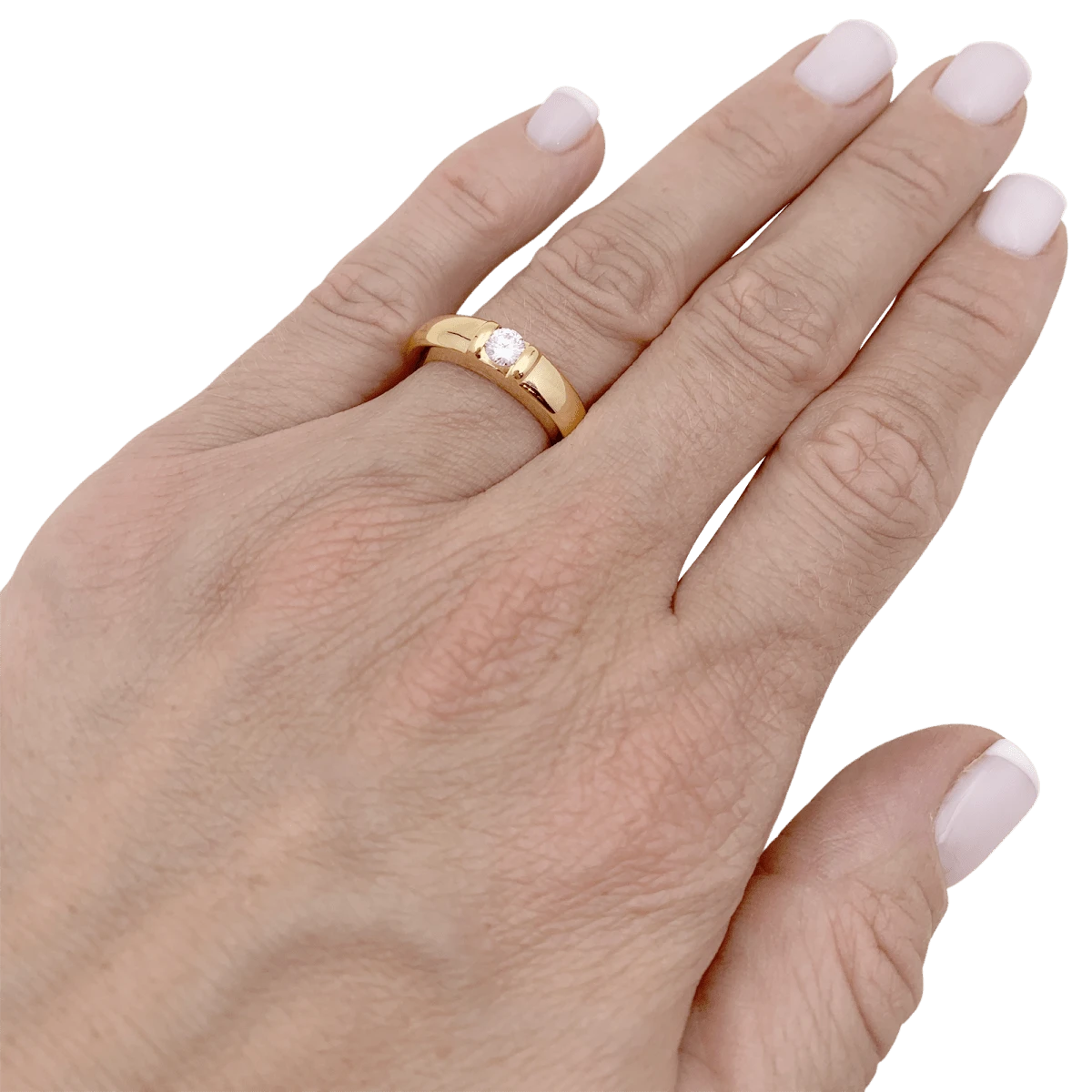 Bague Jonc CHAUMET modèle « Gioia » en or jaune 18 carat serti d’un diamant taille brillant