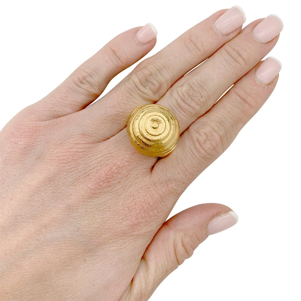 Bague signée LALAOUNIS « Ruche » en or jaune 18 carats dorée à l’or fin ornée d’un motif dôme en spirale rappelant une ruche.