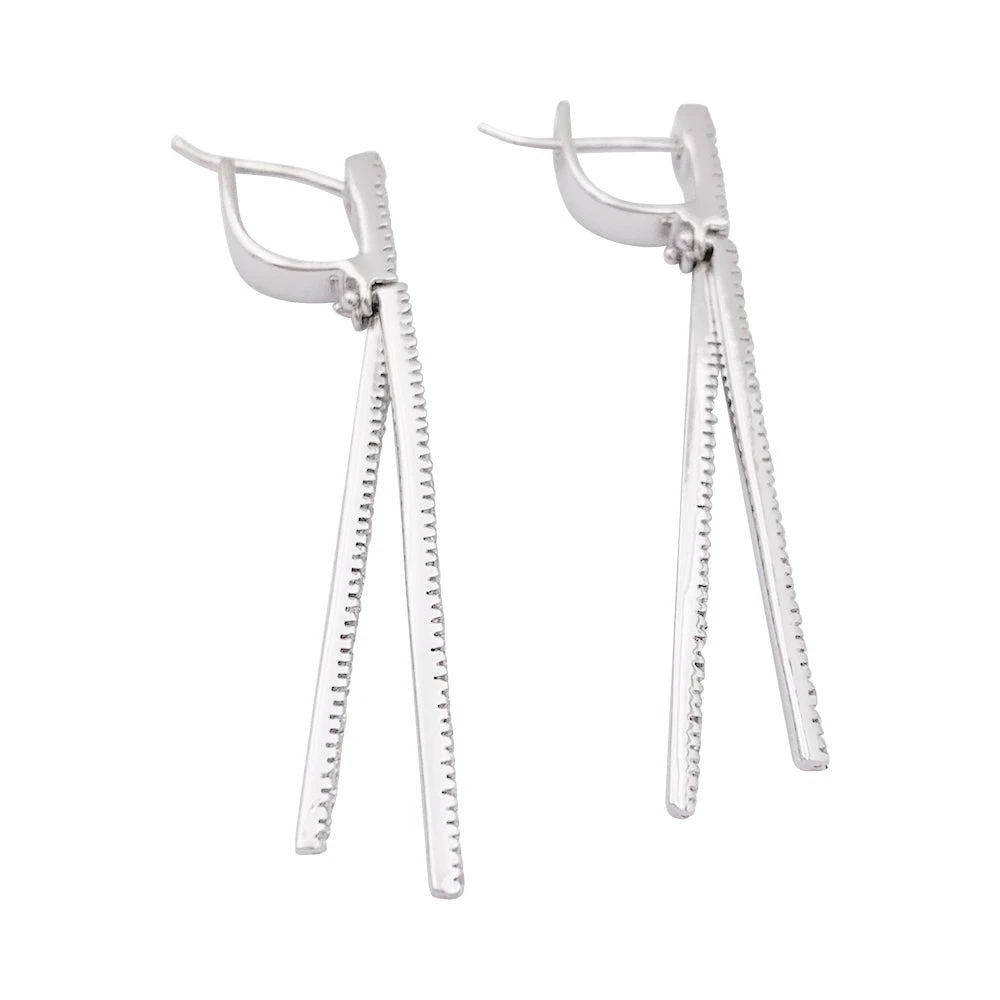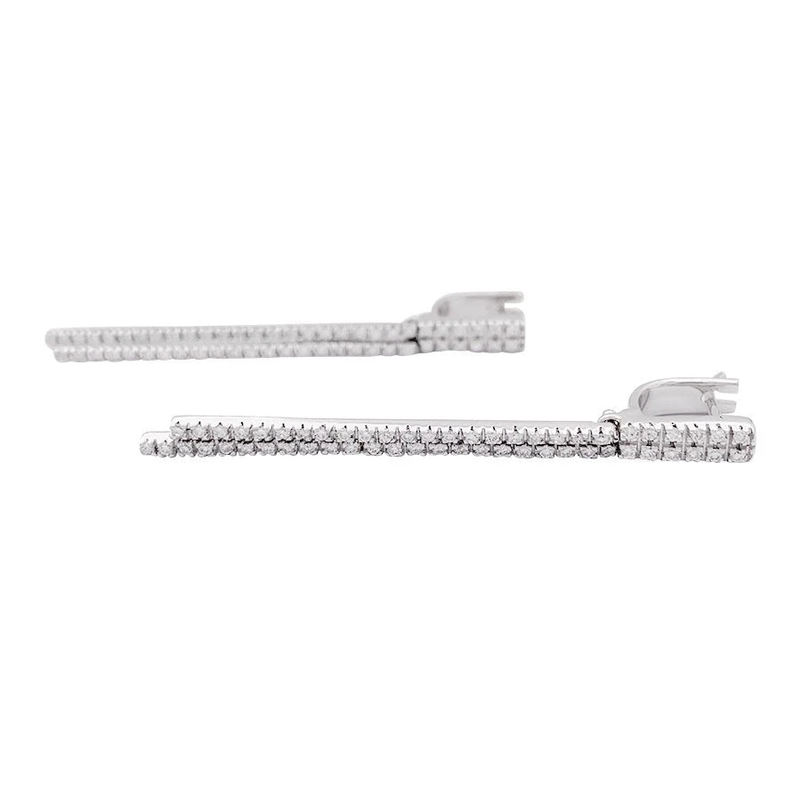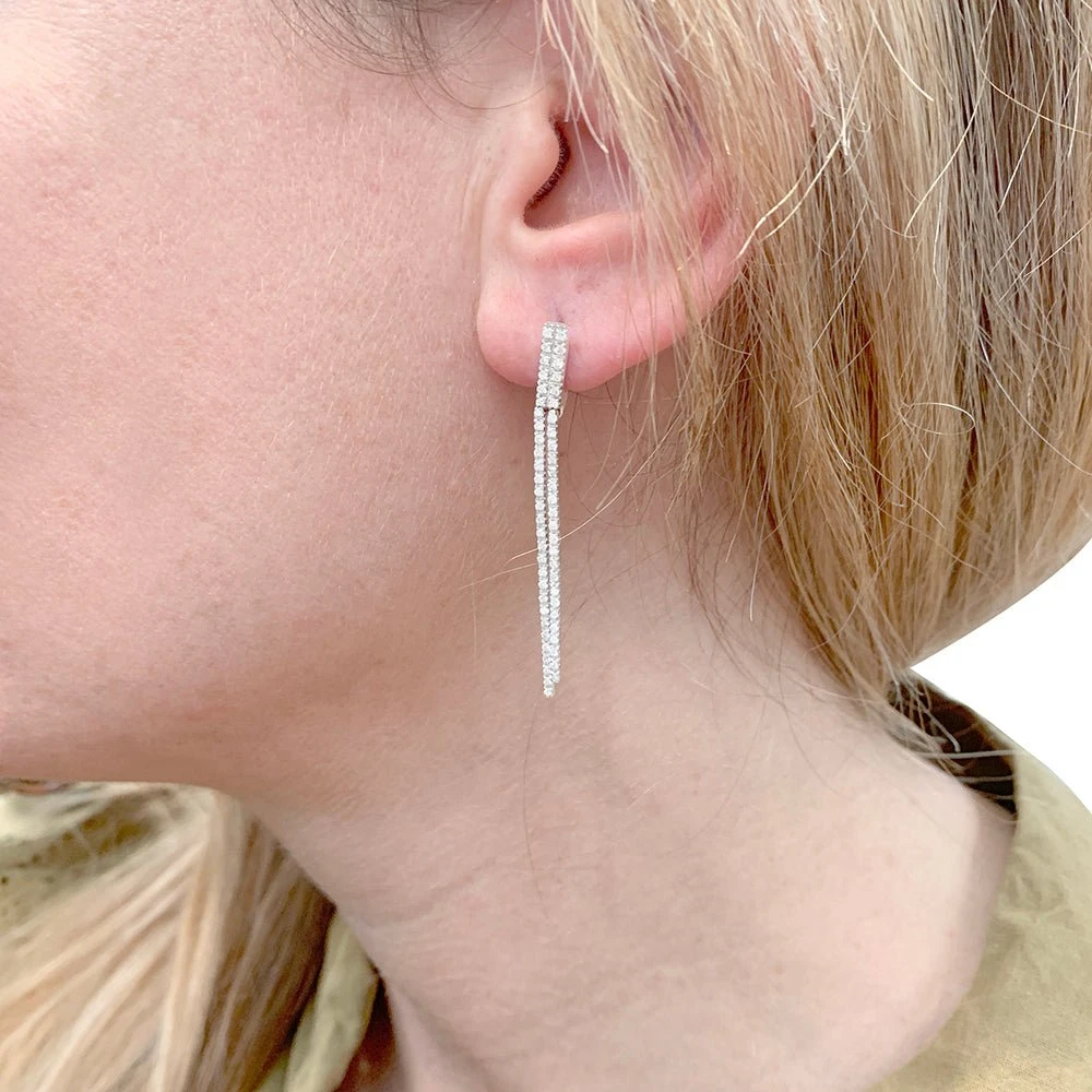 Une paire de boucles d’oreilles pendantes en or blanc 18 carats sertie de diamants taille brillant. Qualité estimée des diamants : H/VS.
