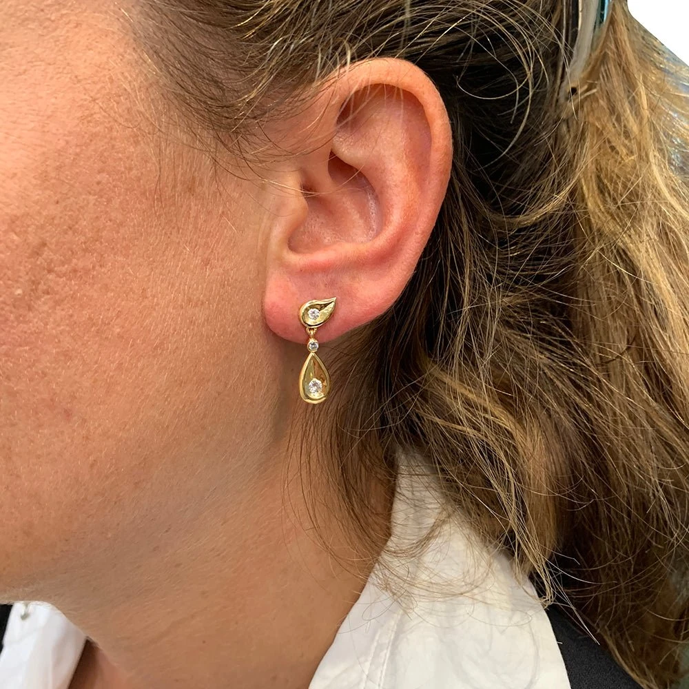 Boucles d’oreilles Pendantes CARTIER en or jaune 18 carats, composées de motifs paisley et gouttes ornés de diamants taille brillant.