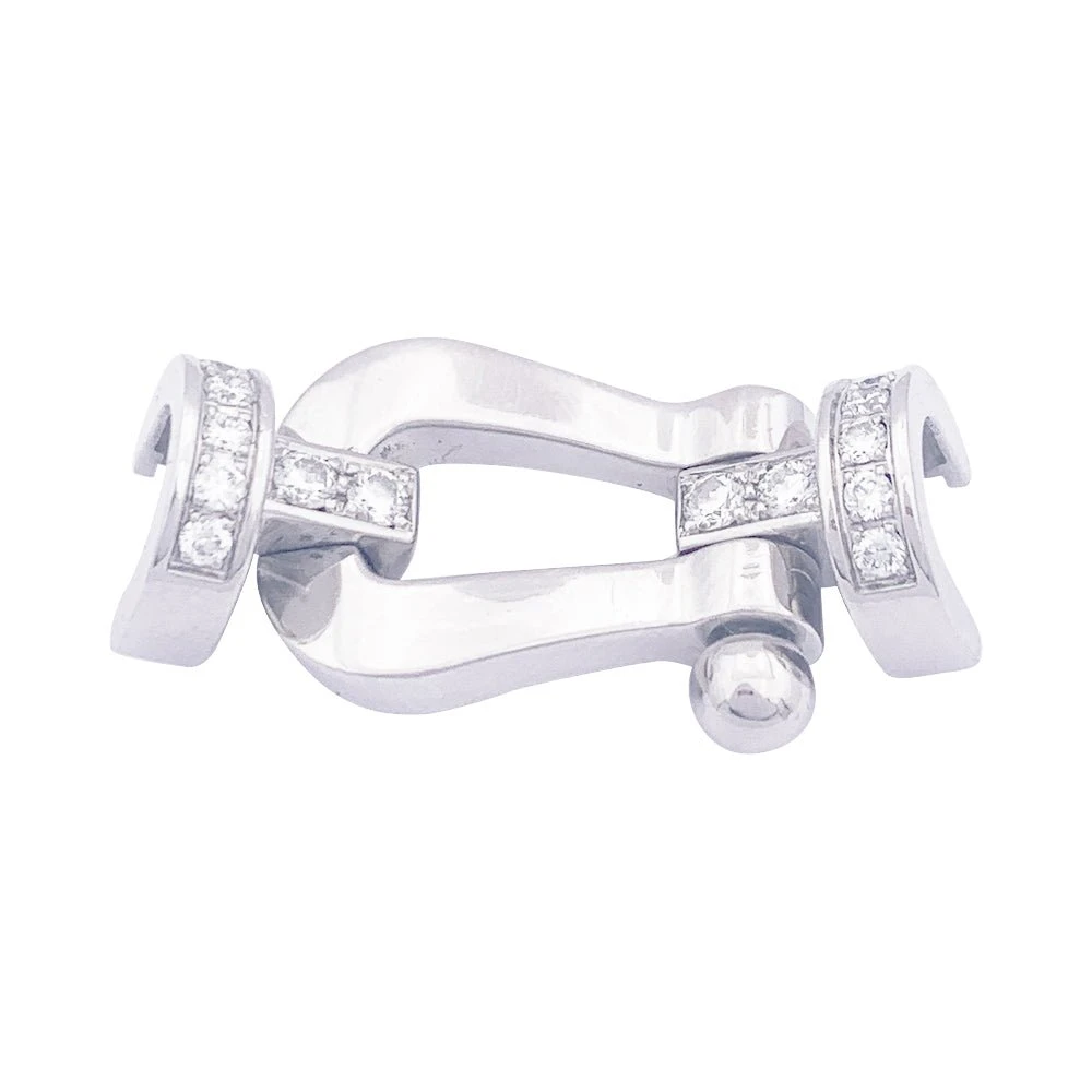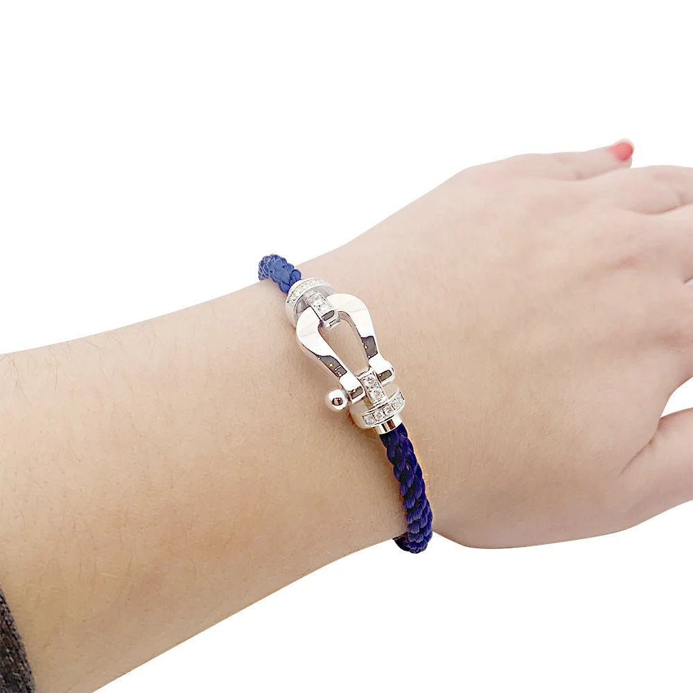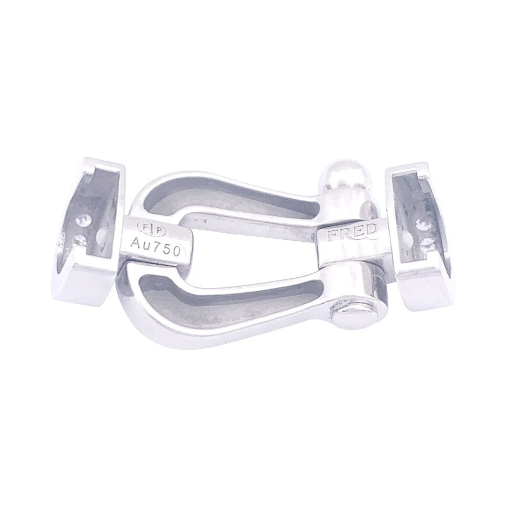 Un bracelet signé de la Maison Fred, collection ‘Force 10’, composé d’une manille en or blanc 18 carats partiellement sertie de diamants taille brillant sur un câble en nylon er acier. Grand Modèle.