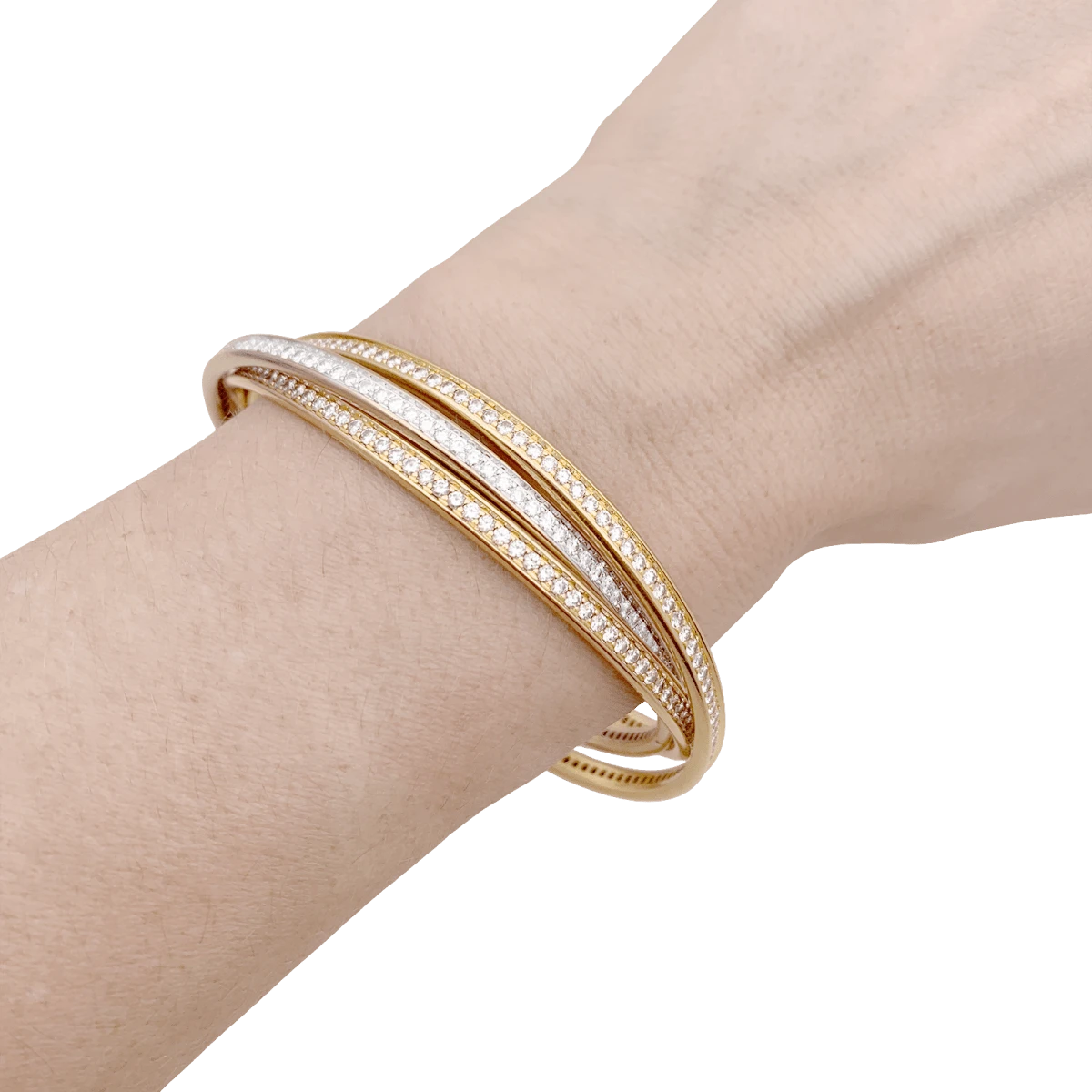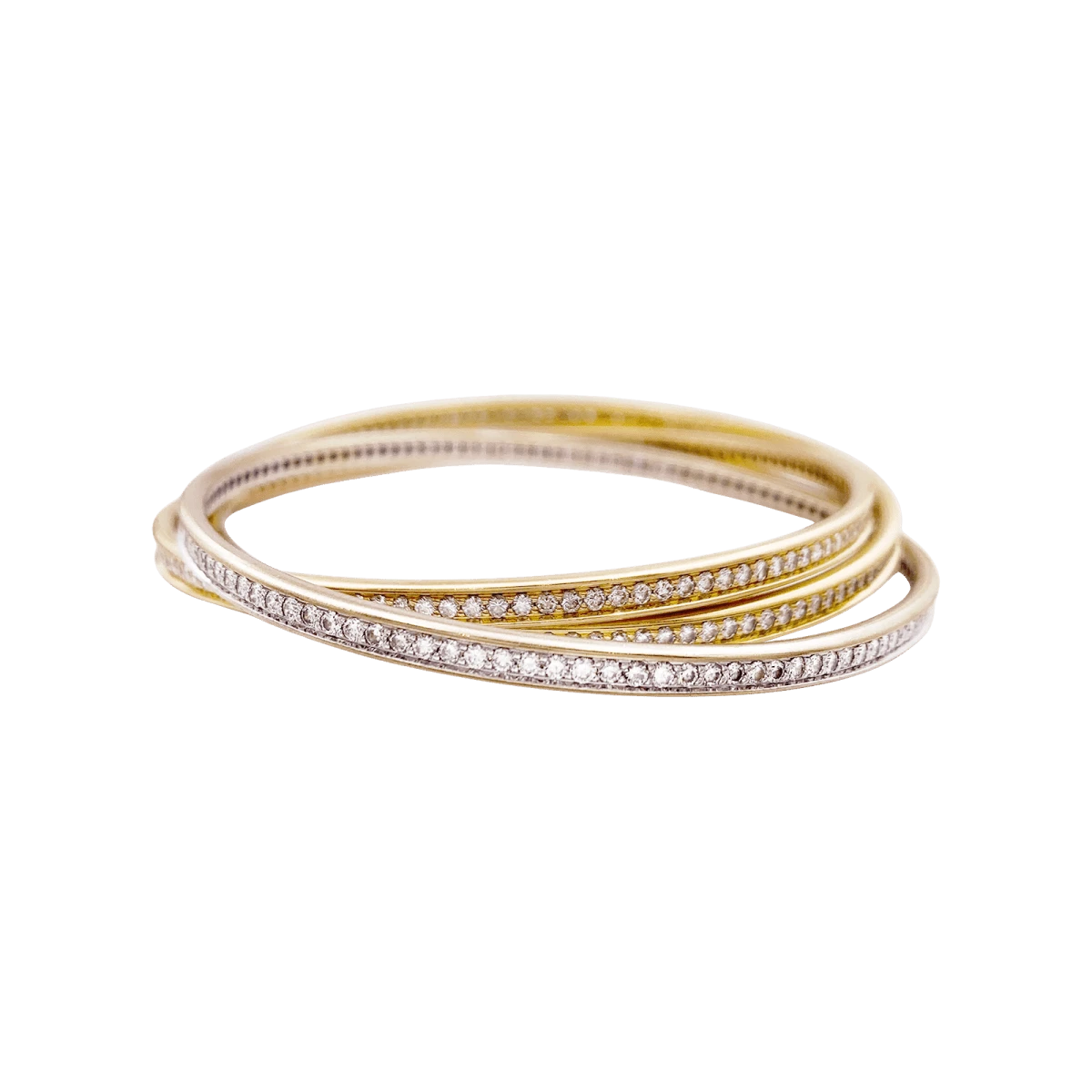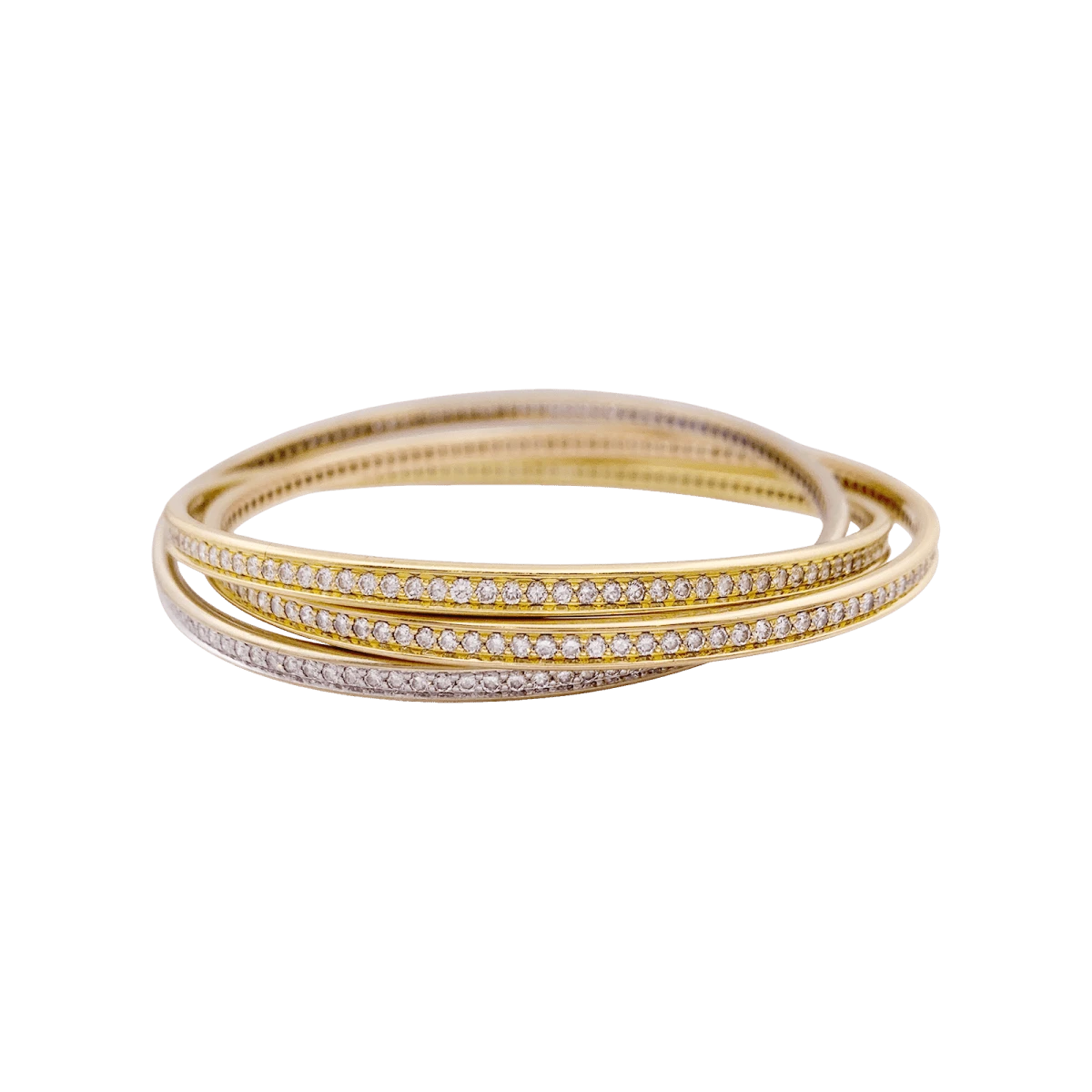 Bracelet Jonc CARTIER « Trinity » en trois ors, entièrement serti de diamants taille brillant. Circa 1980.
