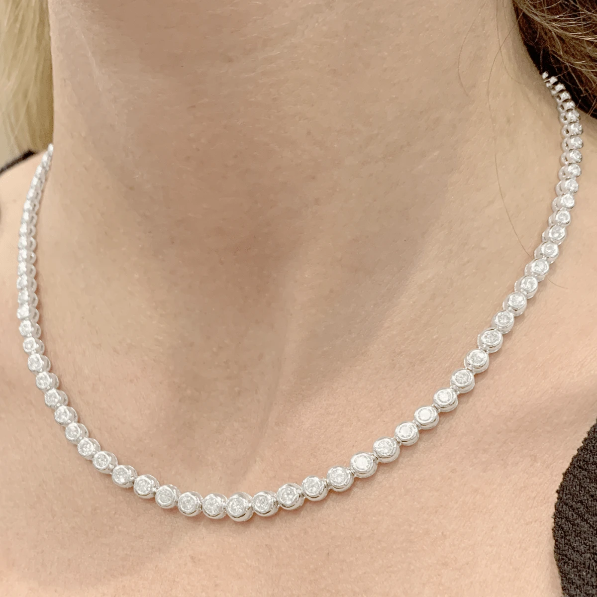 Collier Rivière en or blanc 18 carats agrémenté de 53 diamants taille brillant en serti clos
