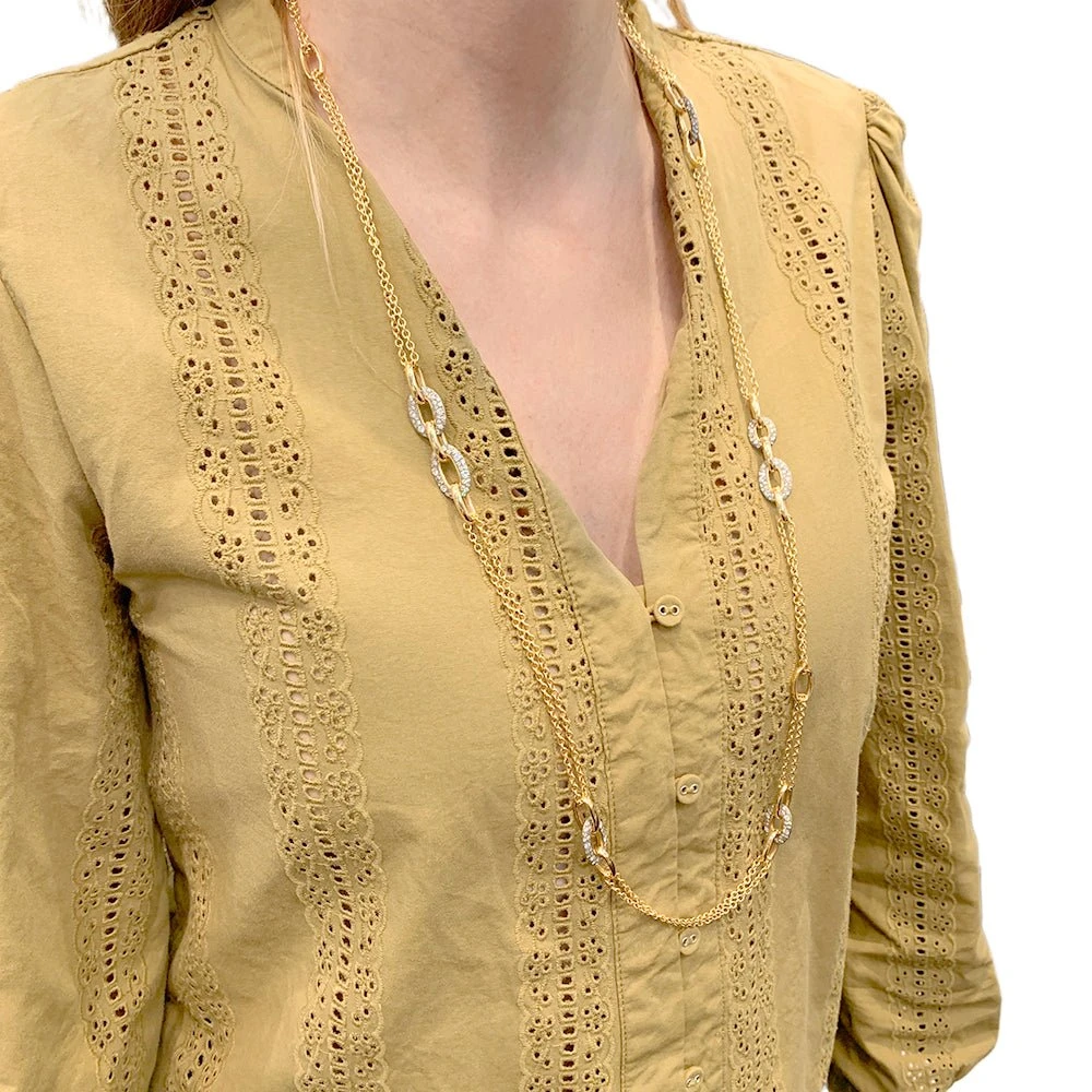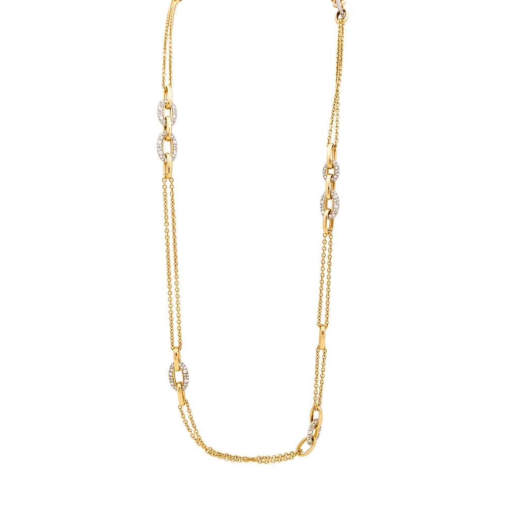 Sautoir signé de la Maison POMELLATO collection “Tango” en or rose 18 carats présentant des maillons ovales de différentes tailles dont certains en argent 925/000 sont sertis de diamants taille brillant.