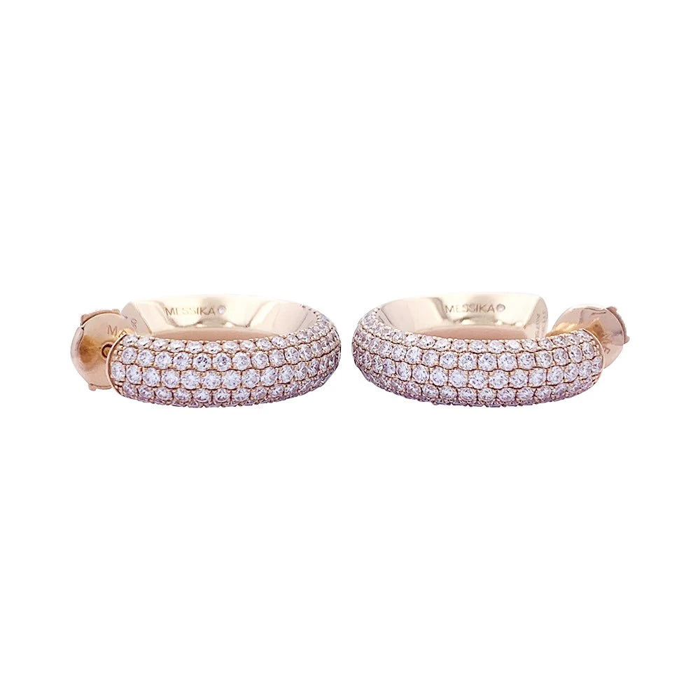 Une paire de créoles signée de la Maison Messika, modèle ‘Divine Enigma’ en or rose 18 carats partiellement pavées de diamants taille brillant.