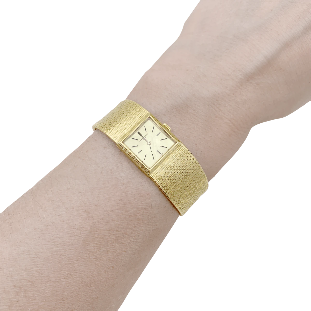 Montre VACHERON CONSTANTIN en or jaune 18 carats. Cadran carré doré, index