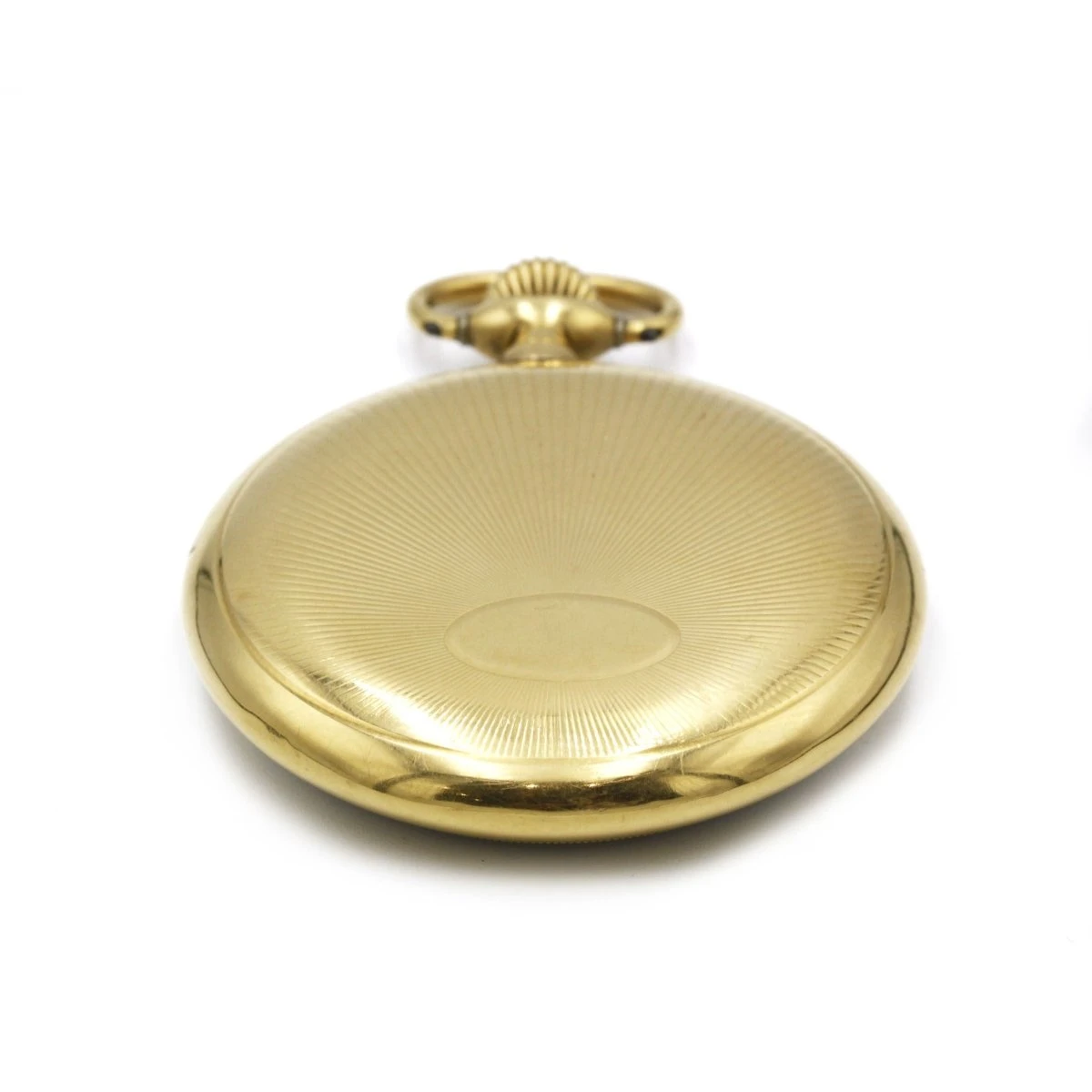 Montre à gousset ZENITH en or jaune 750‰, cadran émaillé à chiffres arabes, cadran des secondes à 6H, bélière remontoir à 12H. Boitier Monobloc.