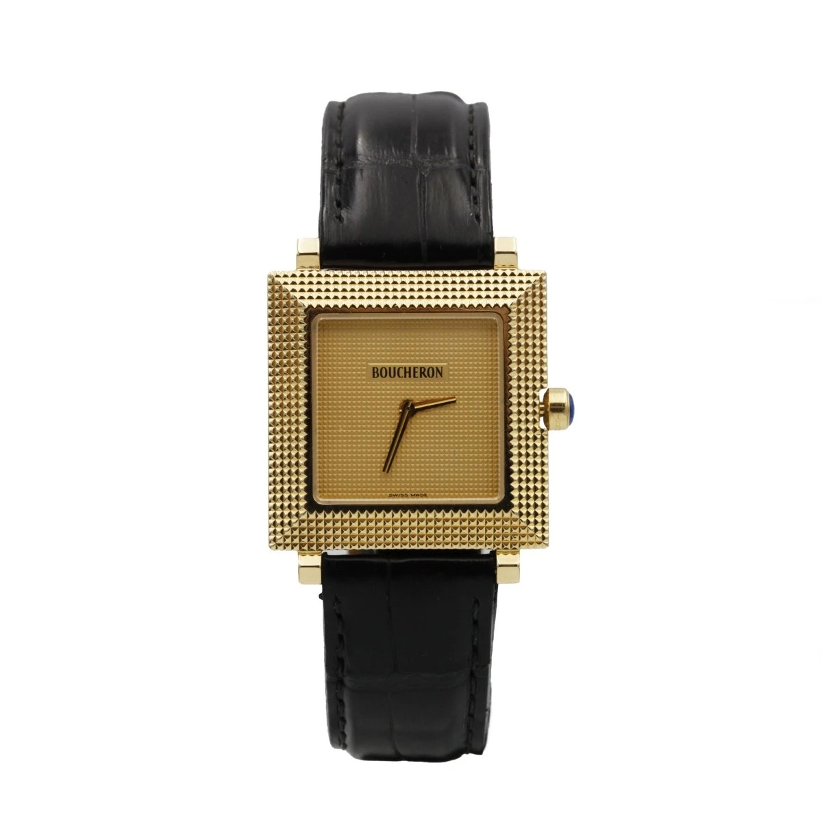 Montre BOUCHERON La Carrée en or jaune 18 carats boucle d’origine signée Boucheron en or.