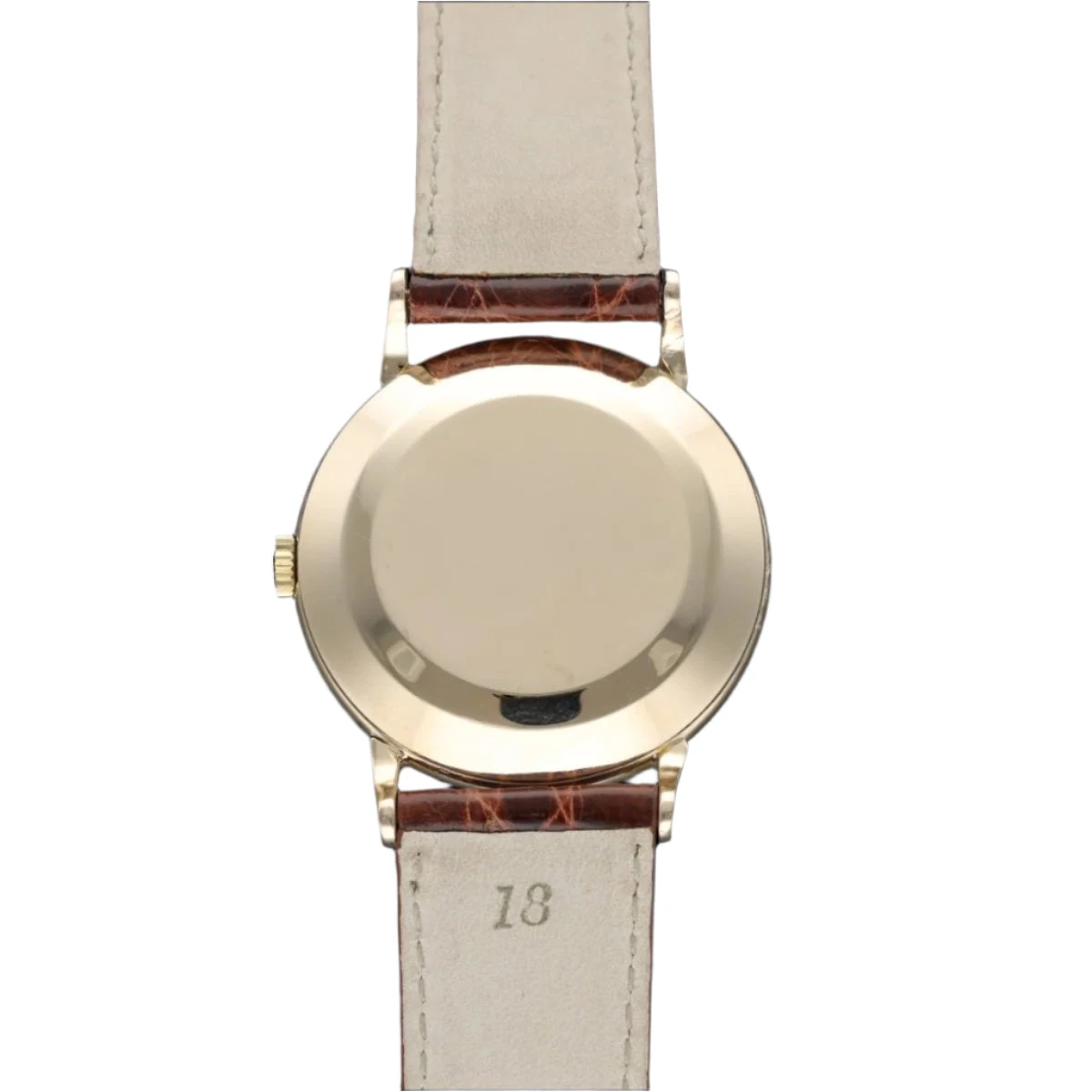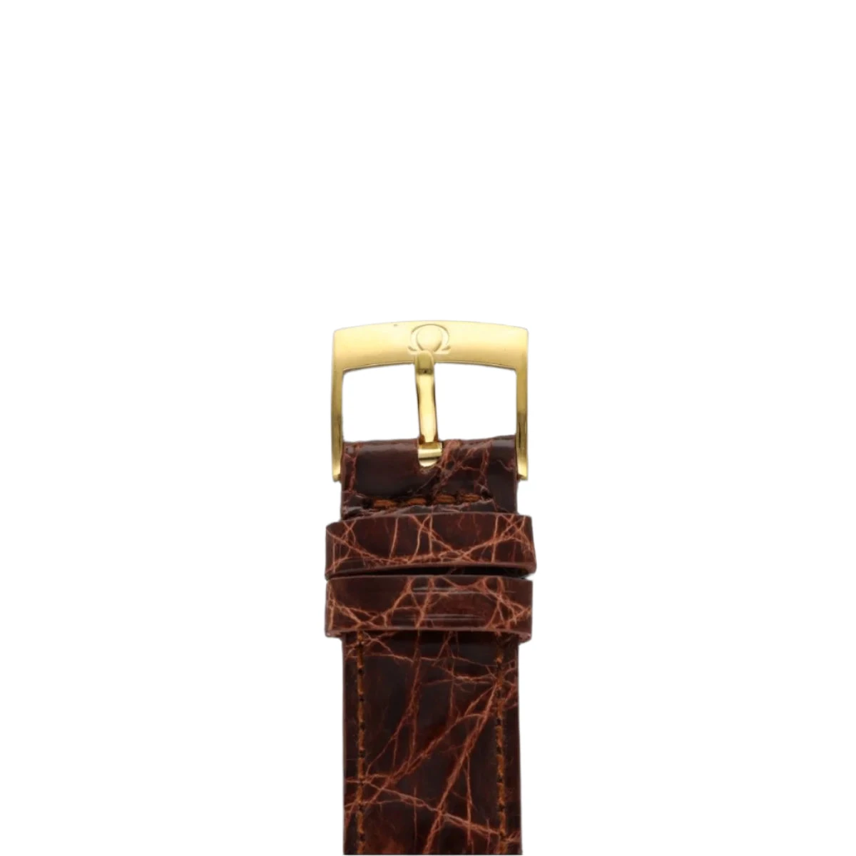 Montre OMEGA vintage de 1961, dotĂ©e d’un mouvement automatique calibre 501, rĂ©putĂ© pour sa prĂ©cision et sa fiabilitĂ©. Le boĂ®tier en laminĂ© or 20 microns, d’un diamètre de 35 mm, conserve ses proportions classiques et Ă©lĂ©gantes. Elle est montĂ©e sur un bracelet avec boucle ardillon signĂ©e Omega, soulignant son authenticitĂ©.Â