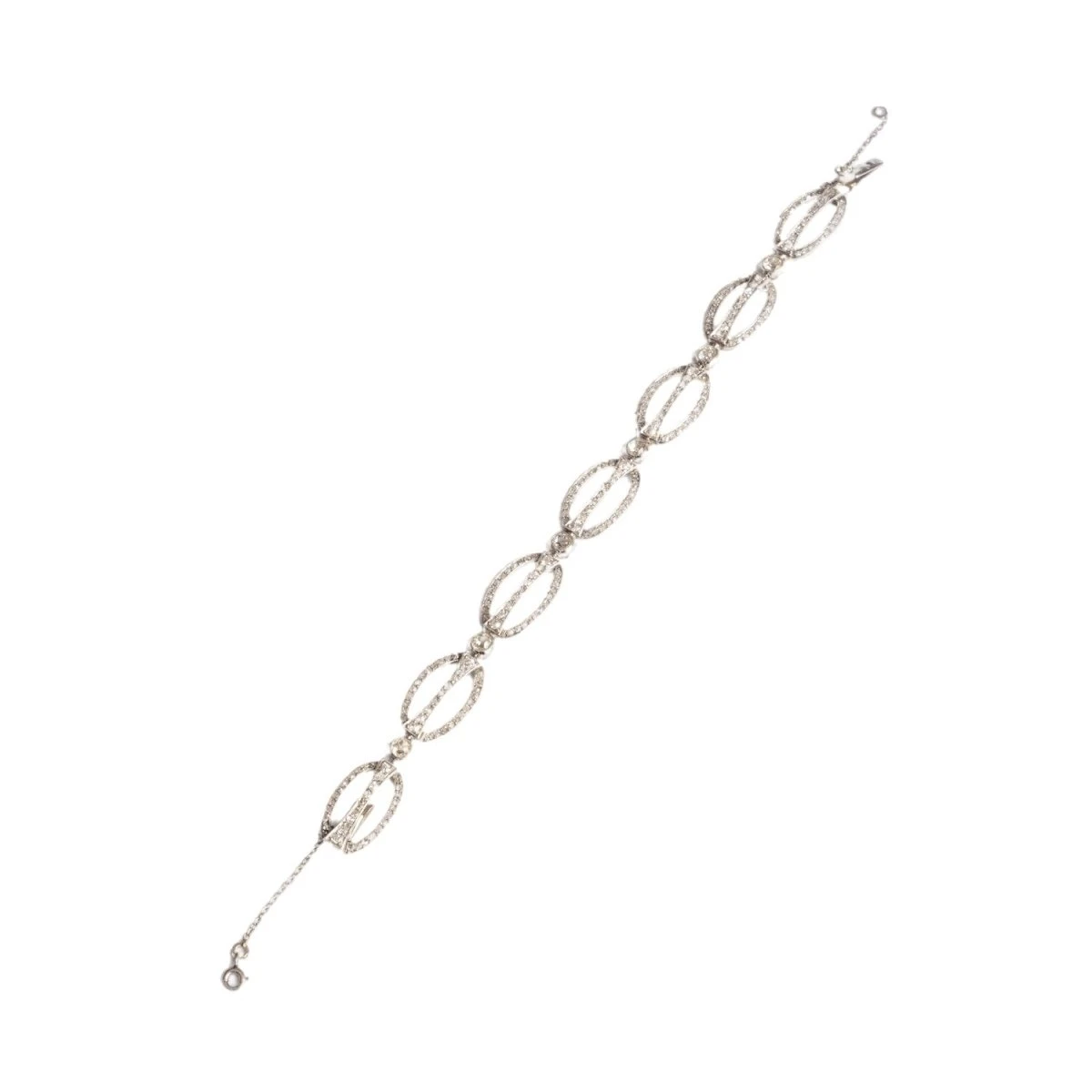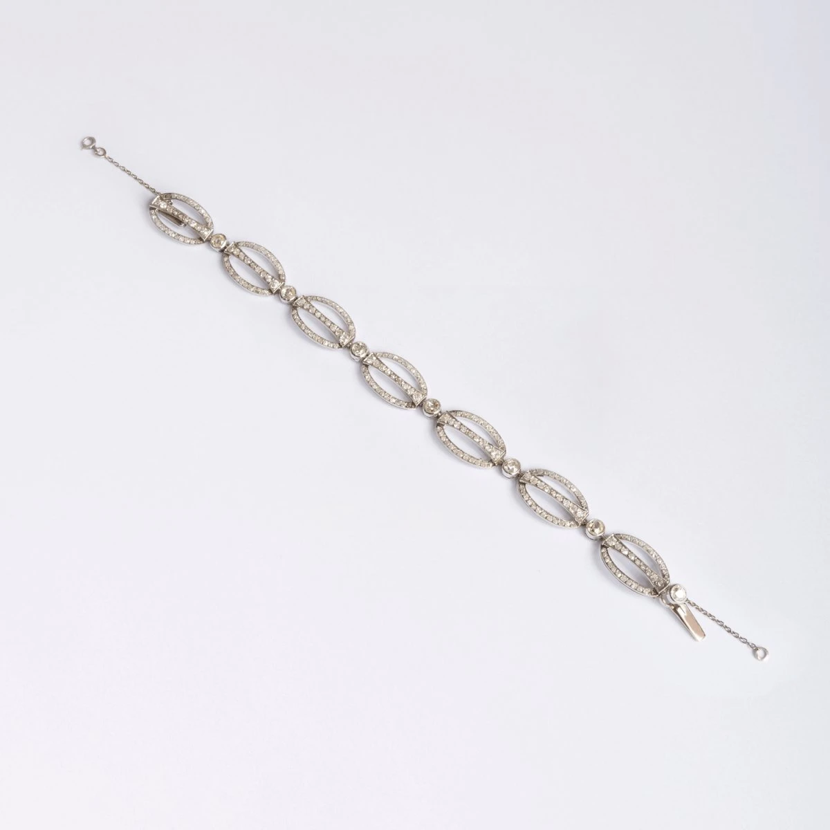 Bracelet Ligne en or blanc 18 carats, et maillons ovales en pavés de diamants.