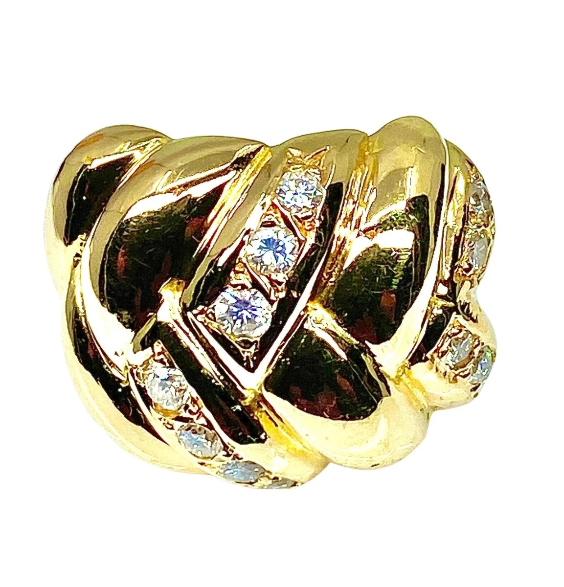 Paire de boucles d’oreilles en or jaune 18 carat, chacune ornée de 12 diamants de taille brillant pour environ 0,35 carat. Système pour oreilles percées. Parfait état..( le collier formant une parure avec ces boucles d’oreilles sont en vente à la rubrique collier or jaune et diamants )